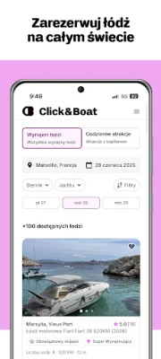 Click&Boat to aplikacja, dzięki której wynajem łodzi staje się prosty i szybki. Znajdź idealną łódź na wodne przygody, rezerwując ją z łatwością, gdziekolwiek jesteś.