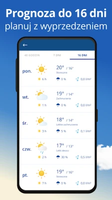 Aby jeszcze bardziej wzbogacić Twoje doświadczenie, Pogoda24 integruje dane z kamerek pogodowych na żywo, umożliwiając wizualną weryfikację warunków atmosferycznych w wybranych lokalizacjach. Dodatkowo, praktyczny widżet meteorologiczny umieszczony na ekranie głównym Twojego telefonu zapewni szybki wgląd w najważniejsze informacje bez konieczności otwierania aplikacji. Dzięki powiadomieniom o alertach pogodowych i szczegółowej mapie radarowej nigdy nie zostaniesz zaskoczony przez nagłą zmianę aury. Z Pogoda24 możesz zawsze podążać za słońcem i cieszyć się bezpieczeństwem, mając pełną kontrolę nad informacjami o pogodzie.